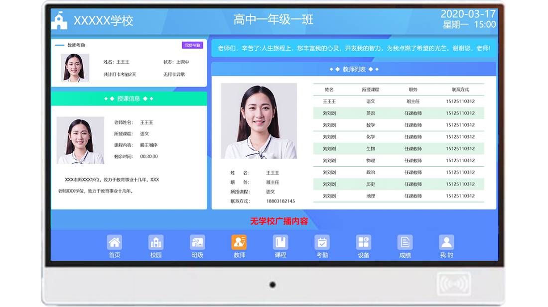 可通過該模塊與學(xué)校排課/選課系統(tǒng)進(jìn)行對(duì)接,實(shí)時(shí)顯示授課信息(課程、時(shí)間、授課老師等)
